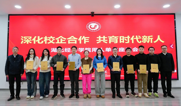 張忠民對(duì)各用人單位的支持表示感謝,他圍繞教育創(chuàng)新與人才培養(yǎng)從三個(gè)方面介紹了我?;厩闆r:一是以“需求為錨”,校準(zhǔn)人才培養(yǎng)方向。積極推進(jìn)專業(yè)升級(jí)改造、優(yōu)化人才培養(yǎng)方案和強(qiáng)化實(shí)踐實(shí)驗(yàn)育人體系,全方位提升學(xué)生專業(yè)素養(yǎng);二是以“質(zhì)量為基”,打造湖經(jīng)人才品牌。努力培養(yǎng)出“上手快、能吃苦、留得住、用得好”的湖經(jīng)人才,與用人單位形成“招聘—培養(yǎng)—回流”的良性循環(huán);三是以“合作為本”,拓展發(fā)展共贏空間。始終將企業(yè)作為人才培養(yǎng)的重要合作伙伴,搭建多元協(xié)同平臺(tái),讓合作從“單向輸出”變?yōu)椤半p向賦能”,從“短期對(duì)接”走向“長期共贏”。