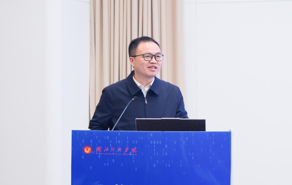 湖北省數(shù)據(jù)局黨組書記、局長(zhǎng)周森鋒指出,面對(duì)數(shù)字技術(shù)創(chuàng)新和數(shù)字經(jīng)濟(jì)發(fā)展這一時(shí)代主線,湖北正系統(tǒng)推進(jìn)數(shù)字產(chǎn)業(yè)集群建設(shè)、數(shù)字技術(shù)協(xié)同創(chuàng)新、數(shù)據(jù)要素市場(chǎng)培育、數(shù)字人才分類培養(yǎng)、數(shù)字生態(tài)優(yōu)化建設(shè),全力打造全國(guó)數(shù)字經(jīng)濟(jì)發(fā)展與數(shù)字經(jīng)濟(jì)人才培養(yǎng)高地。他高度肯定了我校在推動(dòng)數(shù)字技術(shù)與財(cái)經(jīng)學(xué)科融合發(fā)展、人才培養(yǎng)創(chuàng)新方面取得的成效,并希望學(xué)校深化跨界實(shí)踐、凝聚發(fā)展合力、提升破題能力,培養(yǎng)更多數(shù)字人才,形成更多支撐湖北高質(zhì)量發(fā)展的標(biāo)志性成果,為湖北支點(diǎn)建設(shè)貢獻(xiàn)力量。